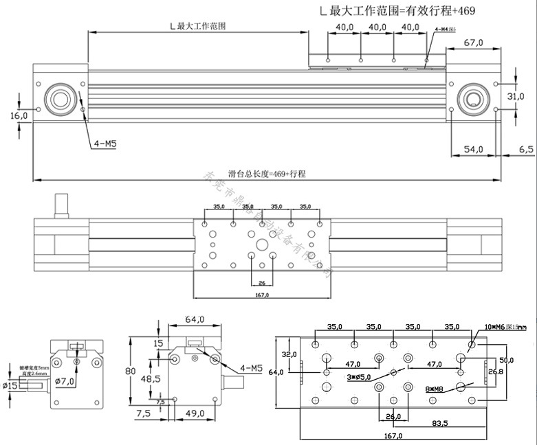 性能及注意事項 1.體 積小重量輕 采 用寬度尺寸小的鋁制底座,實現了輕量、緊湊的構造。高剛性、高精度、價格低、體積小、重量輕、鋁合金結構、模組化設計、滑動臺和底座經過陽極處理后,基座 與滑動臺搭配,實現了高剛性和負載容量。對負載負荷的變位量小,用于搭載的質量或外部負載變動的用途也能依然保持高穩定性。 2.不銹鋼帶防塵裝置 利用獨有的密封墊片覆蓋機構,采用不銹鋼帶,可防止異物進入引動器內部。注) 帶不銹鋼帶時,由于限制了最大行程和最高速度,應加以注意。(最大行程:6000mm、最高速度: 5000mm/s) 3.個性化選擇可根據客戶的使用要求選擇各品牌電機,我司標配臺達伺服電機,根據具體的使用情況即加裝減速機或直接使用。根據不同的應用可調整: