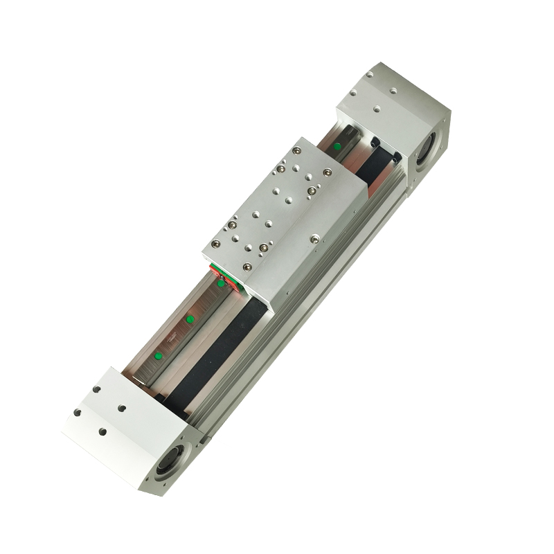 鼎格同步帶直線模組的運(yùn)行依賴一套精密傳動(dòng)機(jī)制。動(dòng)力源一般為伺服電機(jī)或步進(jìn)電機(jī),電機(jī)運(yùn)轉(zhuǎn)帶動(dòng)主動(dòng)輪旋轉(zhuǎn)。同步帶內(nèi)表面有特定齒形,與主動(dòng)輪及從動(dòng)輪的齒槽精準(zhǔn)嚙合,從而將電機(jī)的旋轉(zhuǎn)運(yùn)動(dòng)平穩(wěn)轉(zhuǎn)化為直線運(yùn)動(dòng)。在同步帶特定位置固定有滑塊,負(fù)載安裝于滑塊之上,當(dāng)同步帶移動(dòng)時(shí),滑塊及負(fù)載隨之做直線位移,實(shí)現(xiàn)精準(zhǔn)定位與直線輸送。為保證同步帶始終處于最佳工作狀態(tài),模組配備了張力調(diào)節(jié)裝置,通過調(diào)整同步帶松緊度,防止出現(xiàn)打滑現(xiàn)象,確保動(dòng)力傳輸?shù)姆€(wěn)定性與準(zhǔn)確性,使整個(gè)系統(tǒng)能夠持續(xù)、可靠運(yùn)行。例如,在電子元器件貼片環(huán)節(jié),電機(jī)驅(qū)動(dòng)主動(dòng)輪,經(jīng)同步帶帶動(dòng)滑塊上的貼裝頭精準(zhǔn)移動(dòng)到指定位置進(jìn)行貼片操作