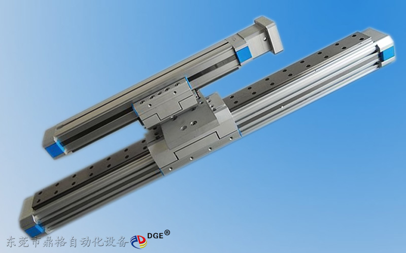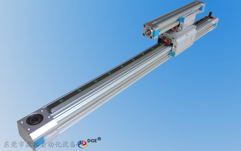 鼎格 DGE-25-SP-EG 伸縮機械手滑臺,采用25型、60型滑臺組合搭配-2條平行軸,缸筒型材(25型45*45mm-有效行程1-1000mm、60型64*64mm -有行程1-6000mm),水平負載能力1-20kg,傳動精度±0.1mm(行程1米以內的精度),最高傳動速度500mm/s和5000mm/s(加減速時間 0.2秒)相關配件:上銀碳鋼直線導軌,德國馬牌同步帶,NSK防水防塵軸承,TBI滾珠絲桿,,可根據客戶行程要求設計定制.