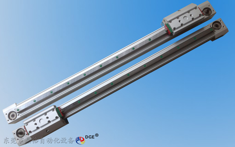鼎格 DGE-25-TB-EG 同步帶直線滑臺,缸筒型材45*45mm,有效行程1-4000mm, 負載能力1-20kg,重復定位精度±0.1mm(行程1米以內的精度),最高速度3000mm/s(加減速時間 0.2秒),同步輪21齒, 同步帶寬15mm,同步帶導程3M,同步輪轉一圈63mm,同步輪出軸Φ8mm,總長度=有效行程+372mm,重量KG=2.25+0.48×行程(如1000=0.48×10)+0.71+0.53,相關配件:上銀直線導軌,美國蓋茨同步帶,NSK防水防塵軸承,垂直使用不建議客戶選用同步帶,會降低同步帶的使用壽命,可單軸使用也可多軸組合使用,可根據客戶行程要求設計定制.