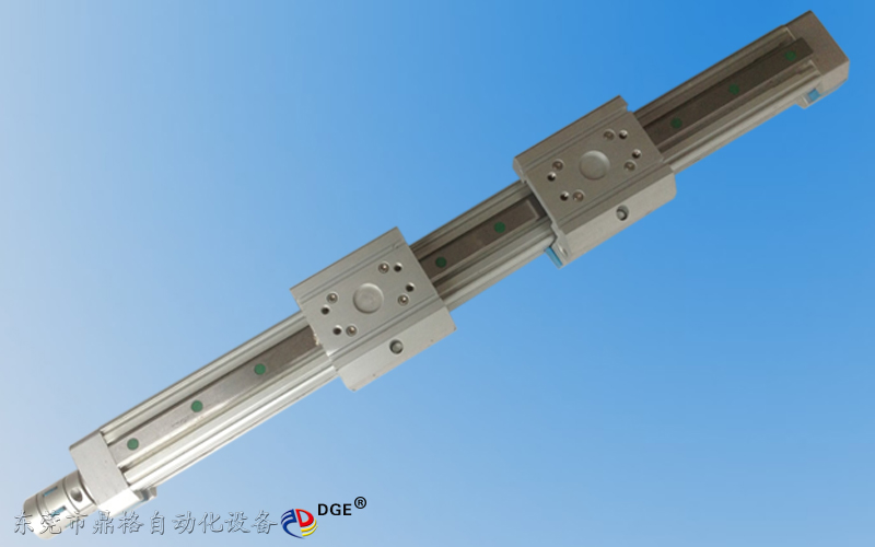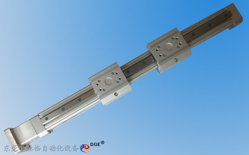 鼎格 DGE-60AA-SP-EG 滾珠絲桿雙滑塊對開滑臺,鋁缸筒型材64*64mm,雙向有效行程1-600mm, 負載能力1-60kg,重復定位精度±0.02mm,最高速度1000mm/s(加減速時間 0.2秒),絲桿等級C7/C5,螺桿直徑16mm,螺桿導程5mm/10mm/20mm,絲桿出軸Φ10mm /Φ12mm,總長度=365+單邊行程*2,相關配件:上銀直線導軌,TBI滾珠絲桿,可根據客戶的行程要求設計定制。